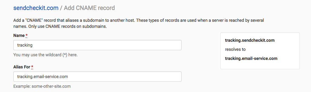 This is from our DNS provider (DNSimple). Yours will look different but the setup is similar.